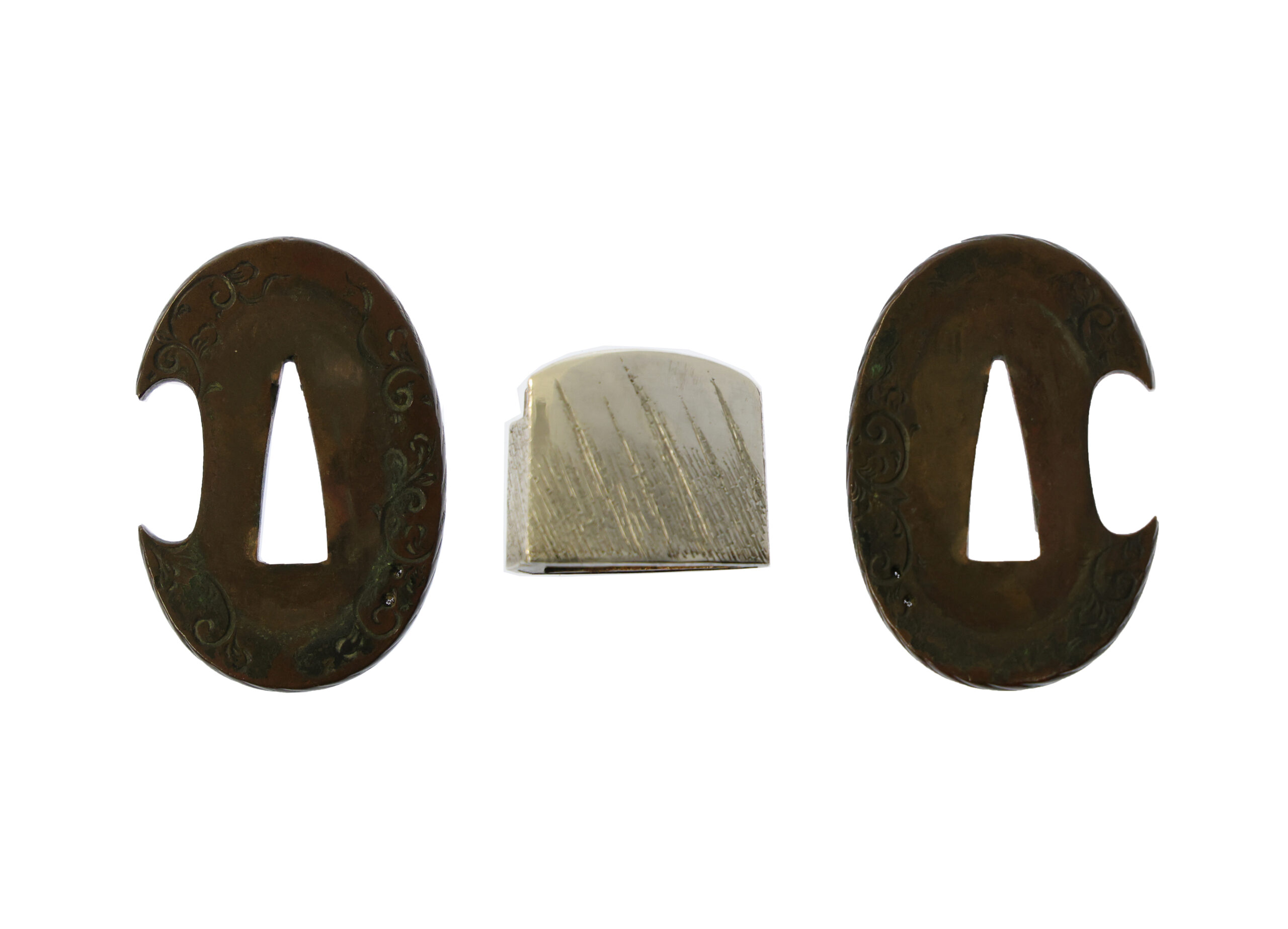 Fuchi-KashiraA pair of matching sword fittings that cover the upper and bottom parts of its sword hilt.