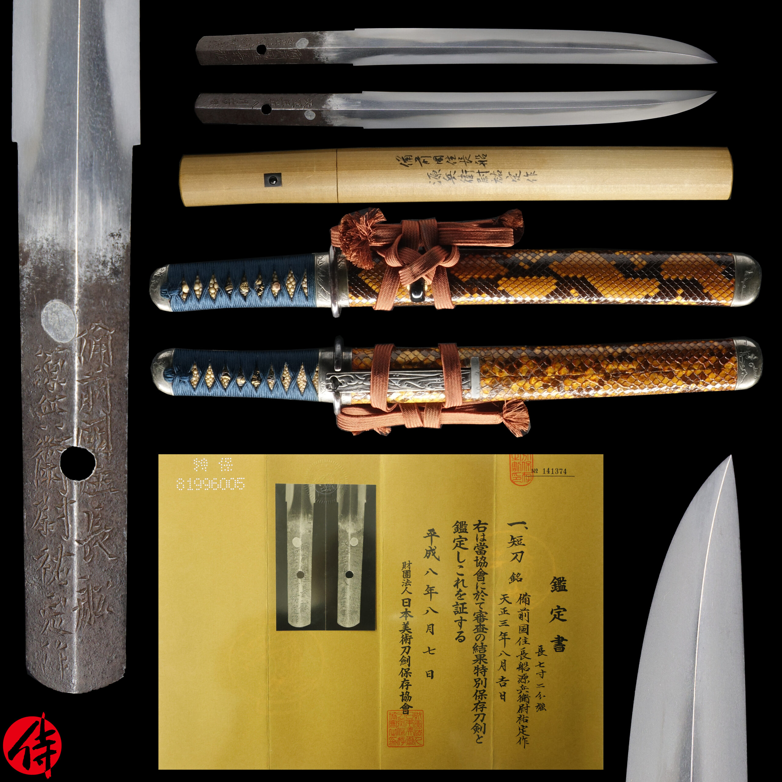 INCLUDED : NBTHK Tokubetsu Hozon Certificate for the blade, Shirasaya Case, Koshirae Case, Traditional Sword Carrying Case, Sword Maintenance Kit, Full Exportation Support