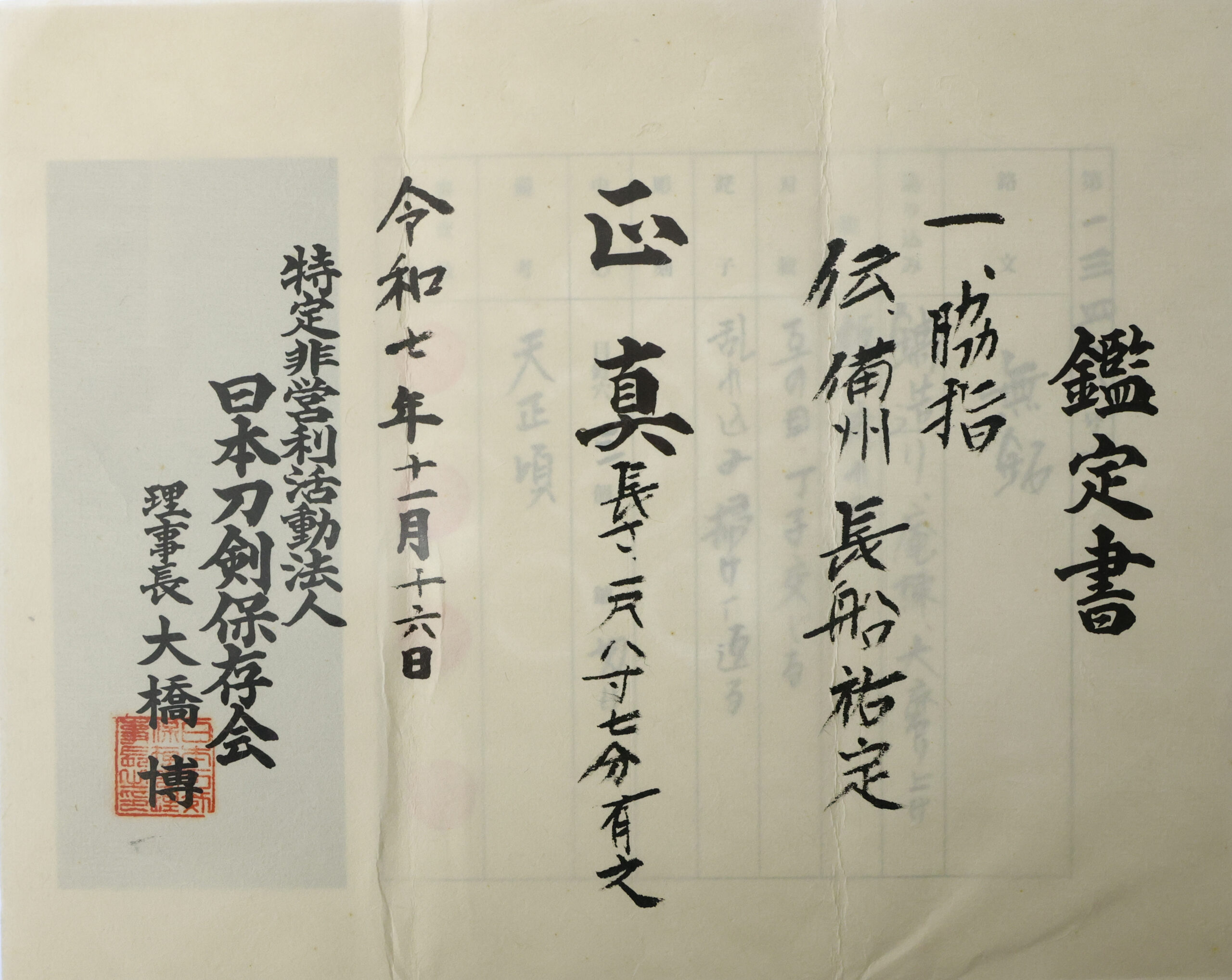NTHK, also known as NPO Nihon Touken Hozon Kai, is the oldest organization for sword authentication of Japanese swords in modern times. It was established in 1889 during the post-Samurai era. They authenticated the blade on November 16th in the 7th year of Reiwa (2025). The purchaser will receive this original certificate as well. We can also translate what is written into English and make a PDF file for your record if you request.
