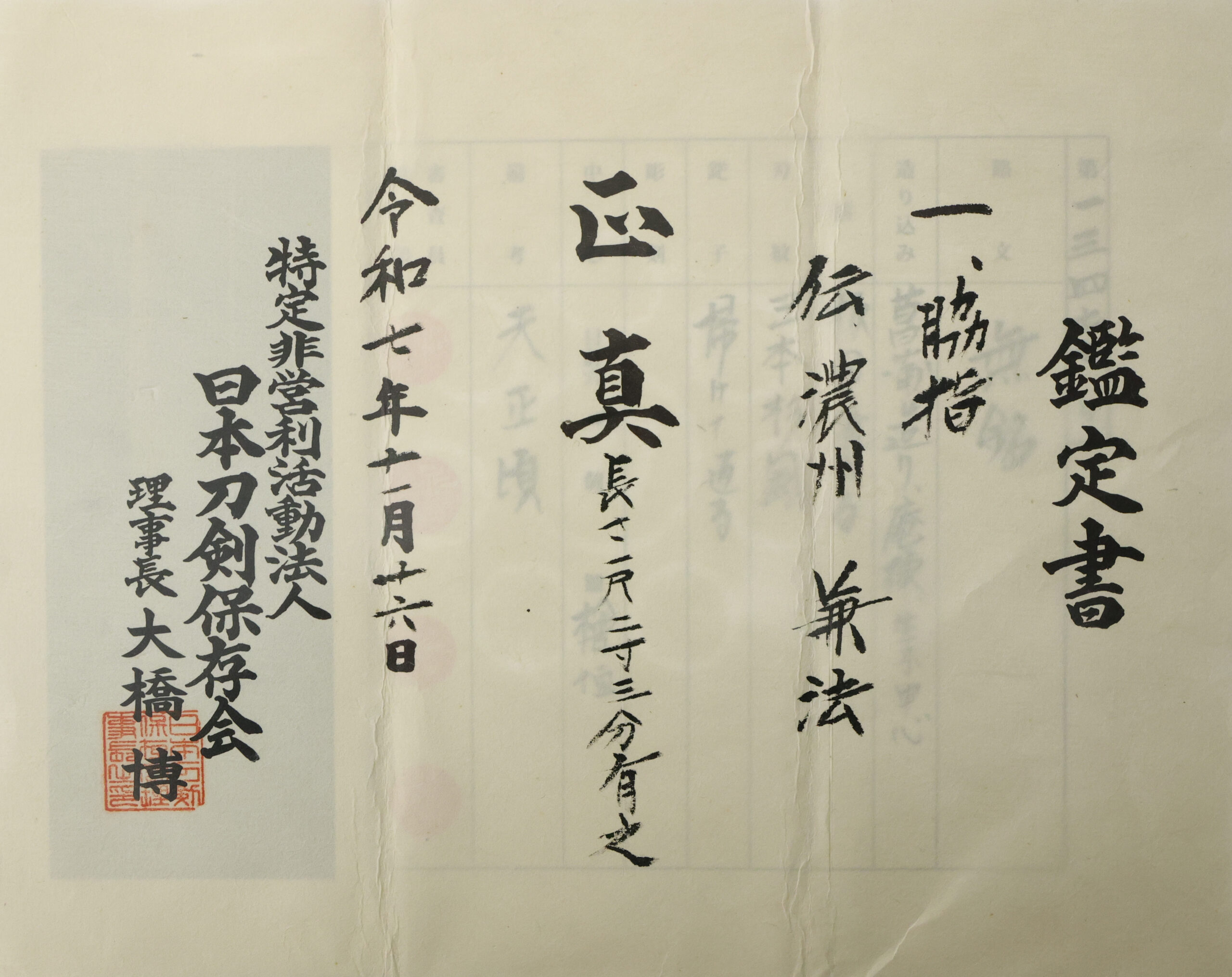 NTHK, also known as NPO Nihon Touken Hozon Kai, is the oldest organization for sword authentication of Japanese swords in modern times. It was established in 1910 during the post-Samurai era. They authenticated the blade on November 16th in the 7th year of Reiwa (2025). The purchaser will receive these original certificates as well. We can also translate what is written into English and make a PDF file for your record if you request.