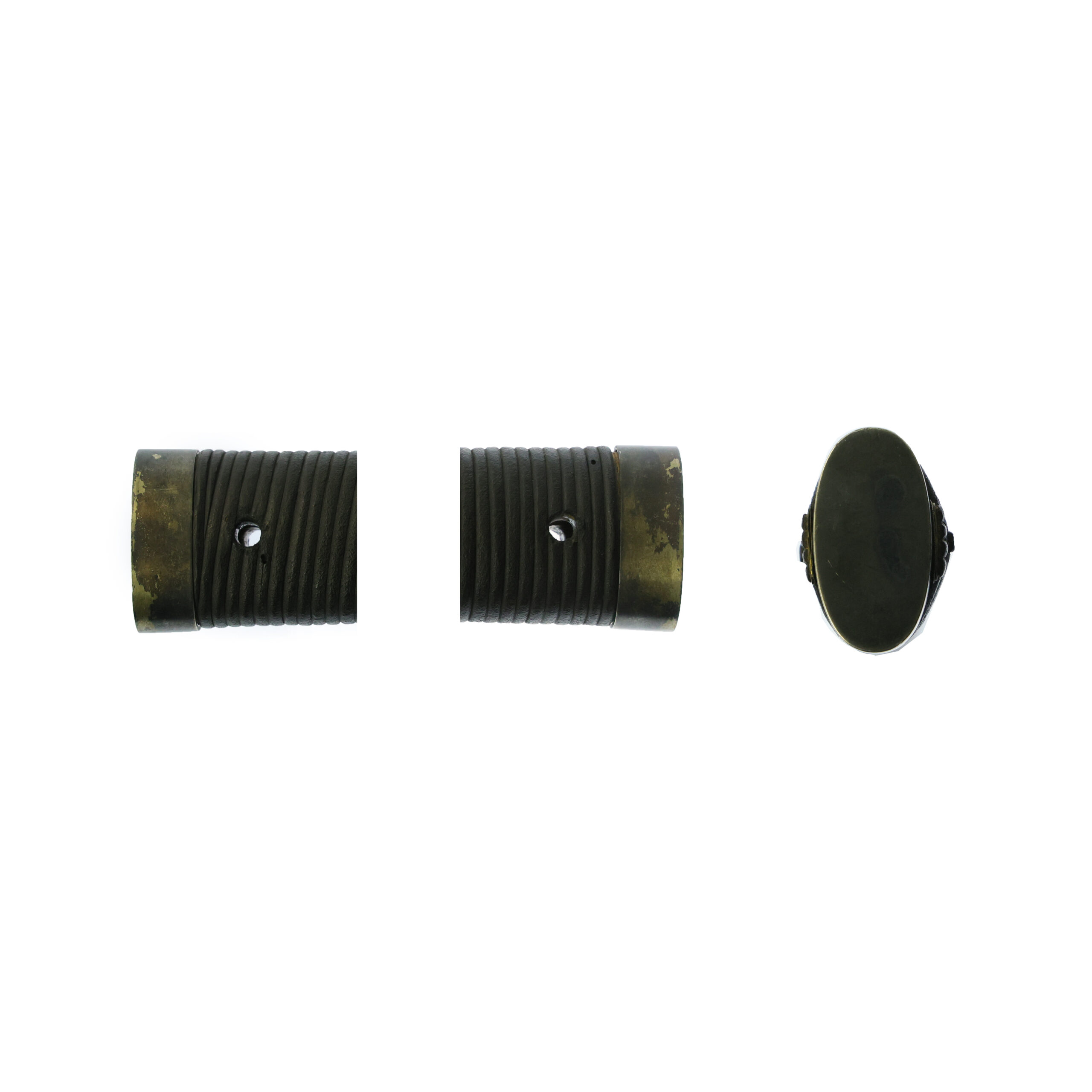 This scabbard is covered with black lacquer. Due to its high waterproof effect, lacquer has been used since ancient times in Asia. The blade of a Japanese sword is made of iron, and moisture is the greatest enemy of iron. For the purpose of carrying the blade without degrading it, people devised a method of coating the scabbard with lacquer. To prevent not only moisture but also rain and snow from penetrating the inside of the scabbard, it was necessary to apply multiple layers of lacquer. The Nushi (塗師, lacquerers) was born precisely because advanced techniques were required to handle the complicated processes.