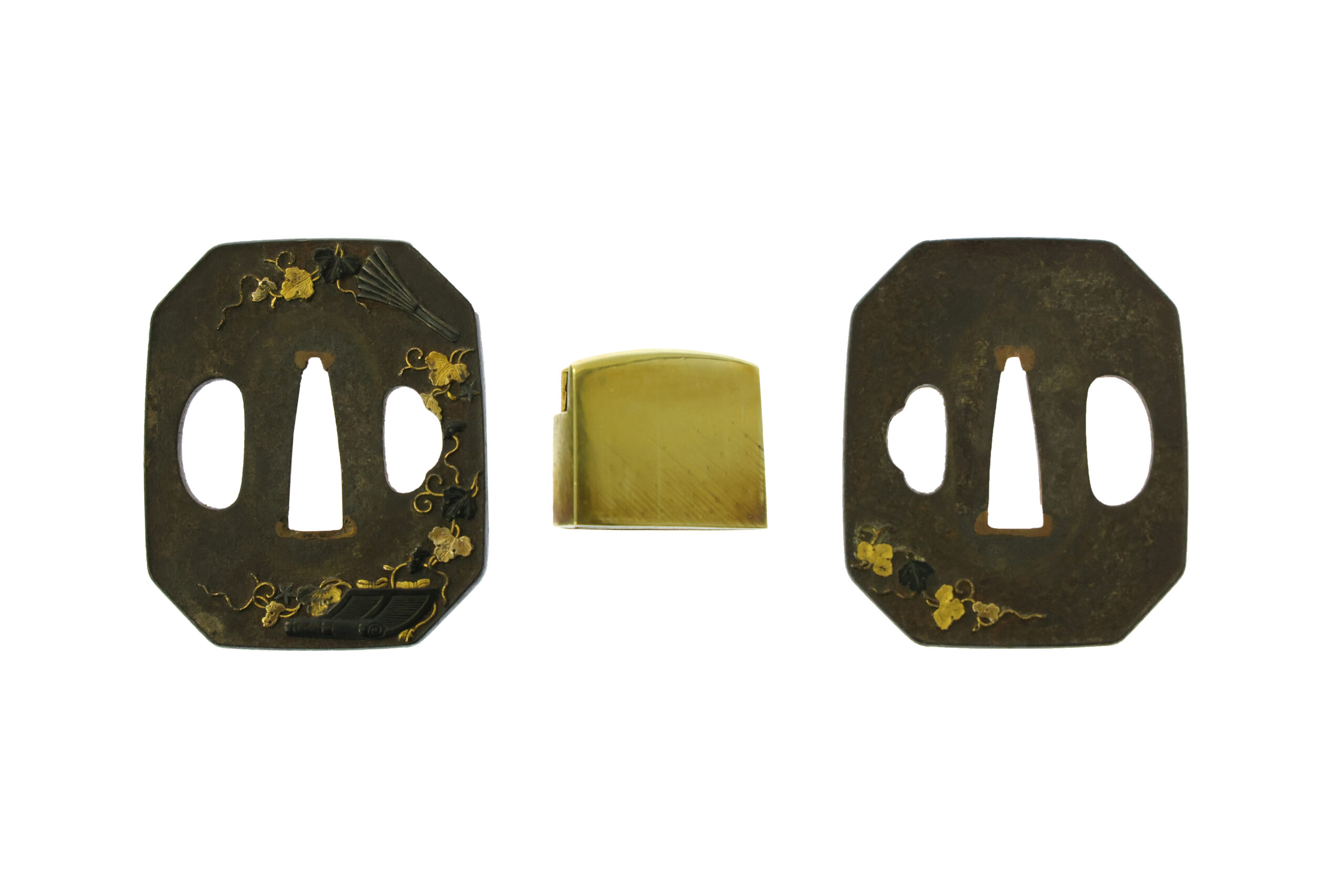 Fuchi-Kashira: A pair of matching sword fittings that cover the upper and bottom parts of its sword hilt.