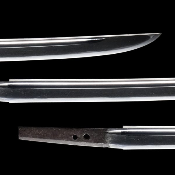 This blade is attributed to Higo Daijyo Sadakuni (肥後大掾貞国), who was active in sword-forging during the Keicho era (1596-1615: Early Edo Period) in Echizen province (today’s Fukui prefecture). He belonged to Echizen Shimosaka School, one of the most prestigious schools in the province during the Edo period. He was a prominent figure in this school. It is said that he was a younger brother of the first-gen Yasutsugu, the founder of the school. And, Sadakuni was the teacher of Kotetsu (虎徹) in terms of Horimono technique(Engraving on the blades). Daijyo was an official rank only given to highly skilled swordsmiths back then.