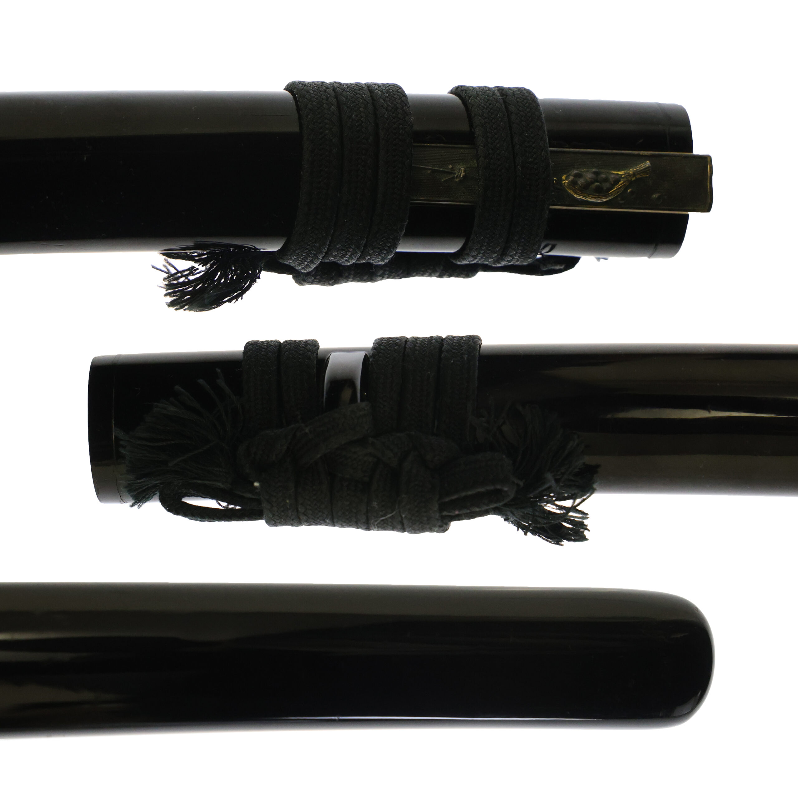 This Saya is covered with black lacquer. Due to its high waterproof effect, lacquer has been used since ancient times in Asia. The blade of a Japanese sword is made of iron, and moisture is the greatest enemy of iron. For the purpose of carrying the blade without degrading it, people devised a method of coating the scabbard with lacquer. To prevent not only moisture but also rain and snow from penetrating the inside of the scabbard, it was necessary to apply multiple layers of lacquer. The Nushi (塗師, lacquerers) was born precisely because advanced techniques were required to handle the complicated processes.