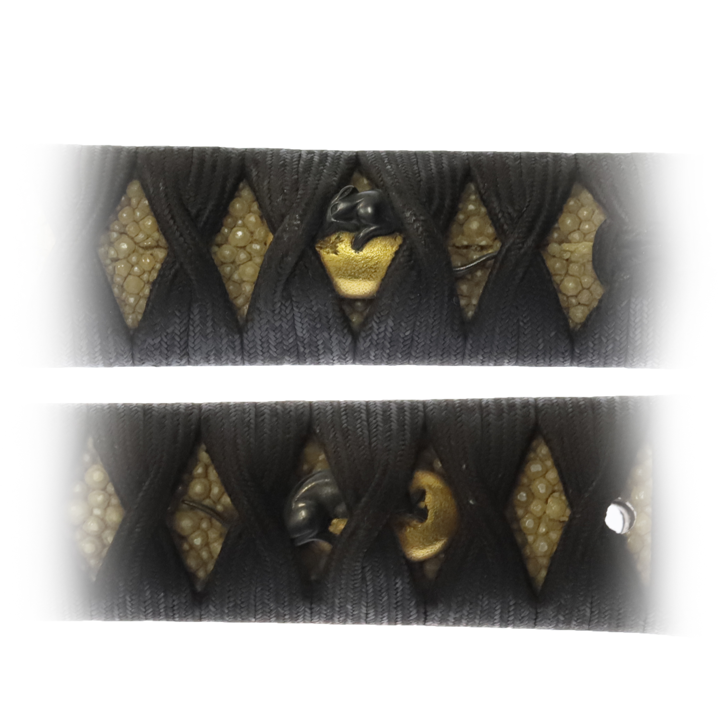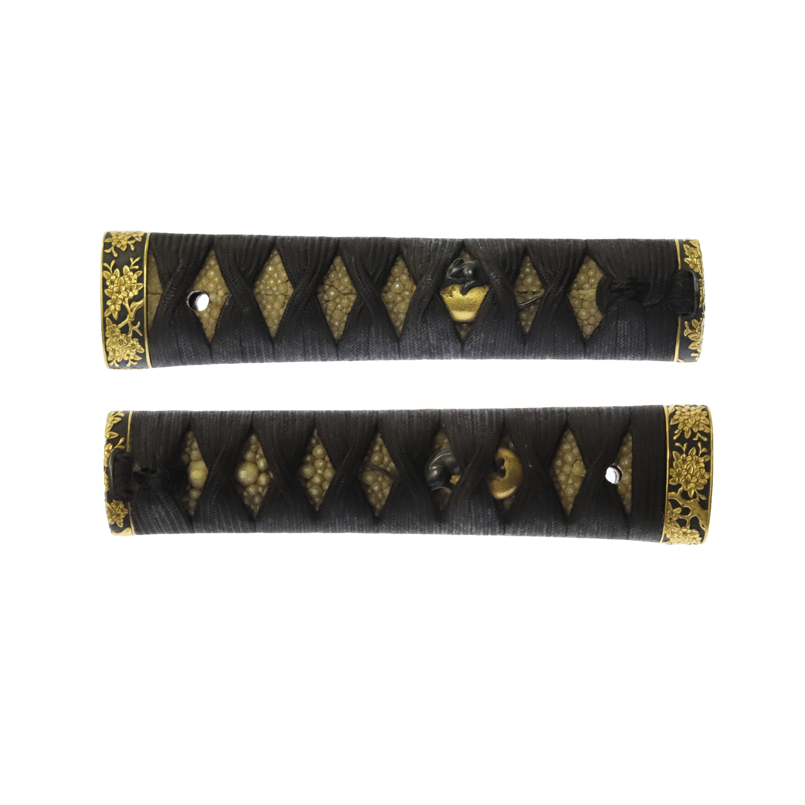 Tsuka and Menuki: Tsuka is the handle of the Japanese sword and Menuki is its decoration.