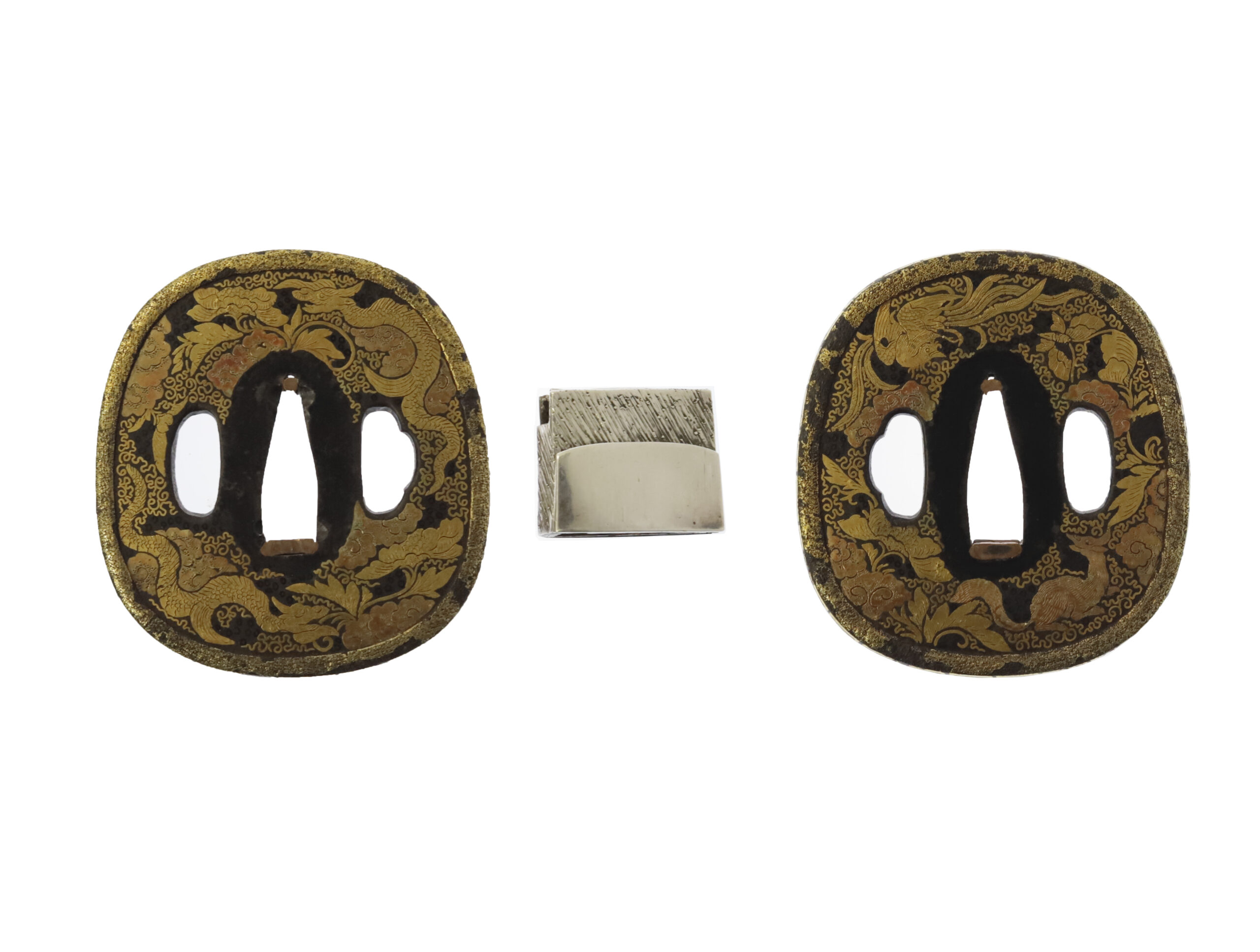 Fuchi-Kashira:A pair of matching sword fittings that cover the upper and bottom parts of its sword hilt.
