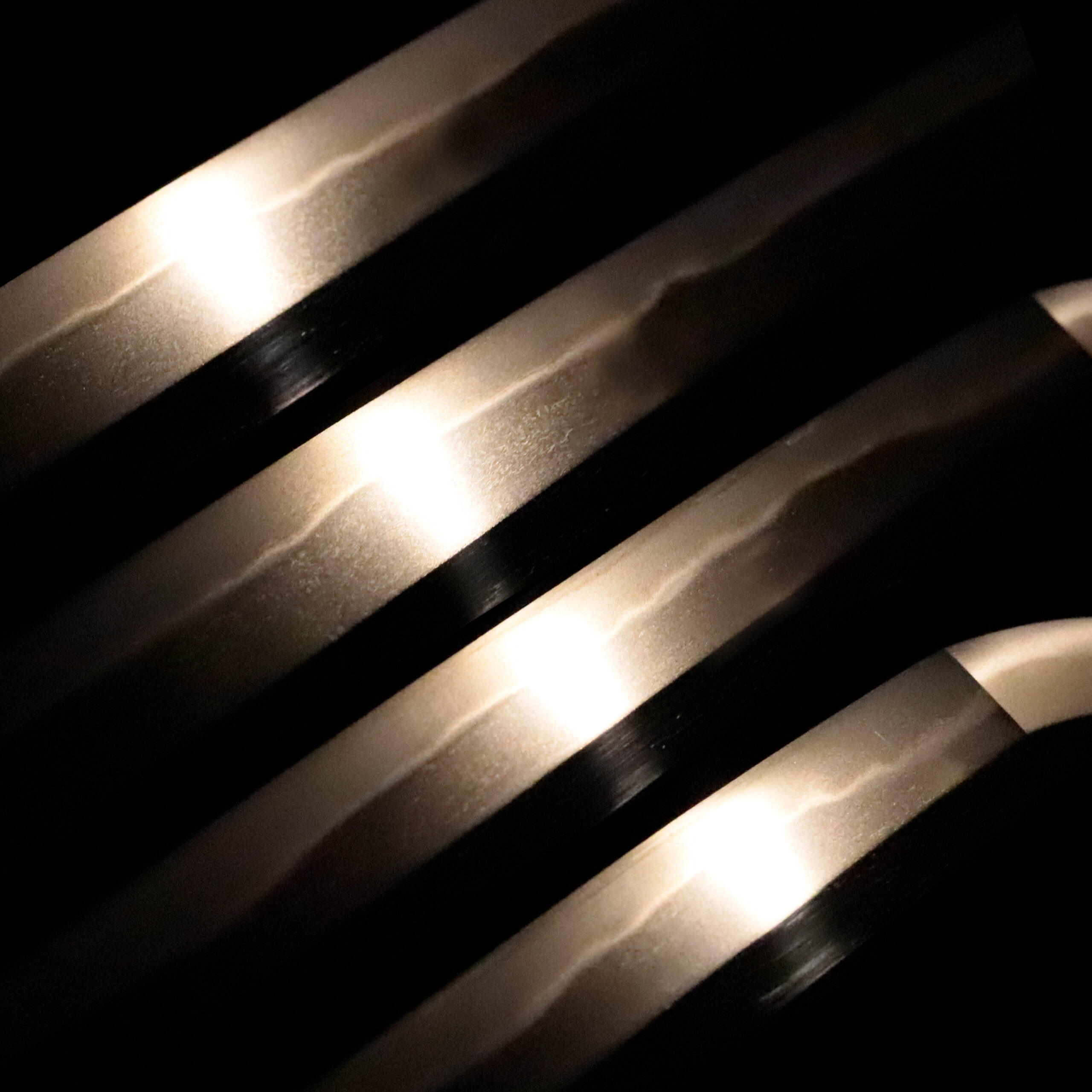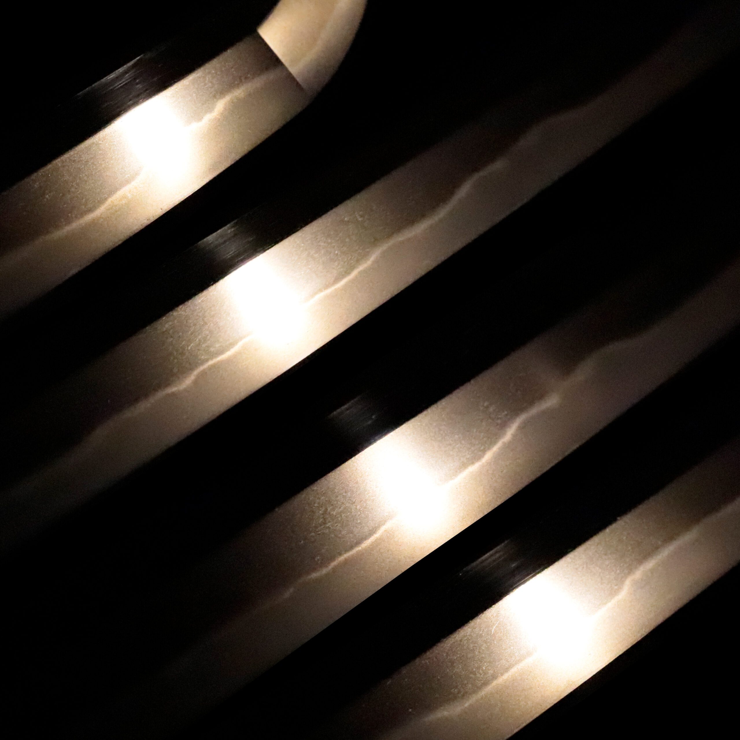 This Saya is covered with black lacquer. Due to its high waterproof effect, lacquer has been used since ancient times in Asia. The blade of a Japanese sword is made of iron, and moisture is the greatest enemy of iron. For the purpose of carrying the blade without degrading it, people devised a method of coating the scabbard with lacquer. To prevent not only moisture but also rain and snow from penetrating the inside of the scabbard, it was necessary to apply multiple layers of lacquer. The Nushi (塗師, lacquerers) was born precisely because advanced techniques were required to handle the complicated processes.