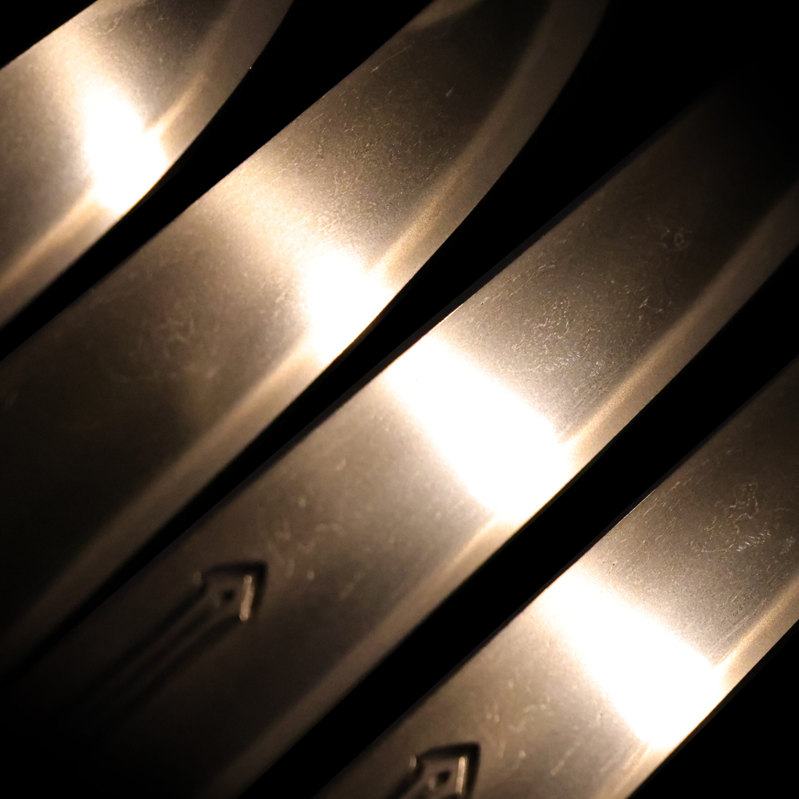 visible steel surface pattern created by folding and hammering during forging process