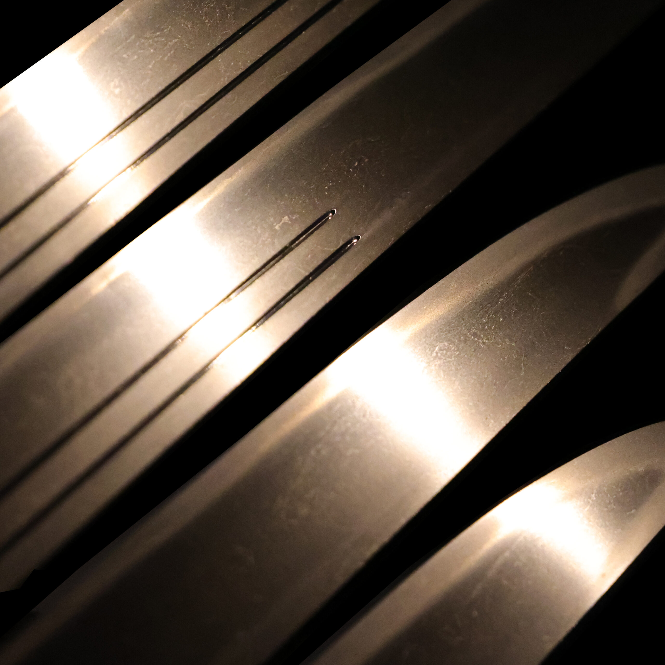 visible steel surface pattern created by folding and hammering during forging process