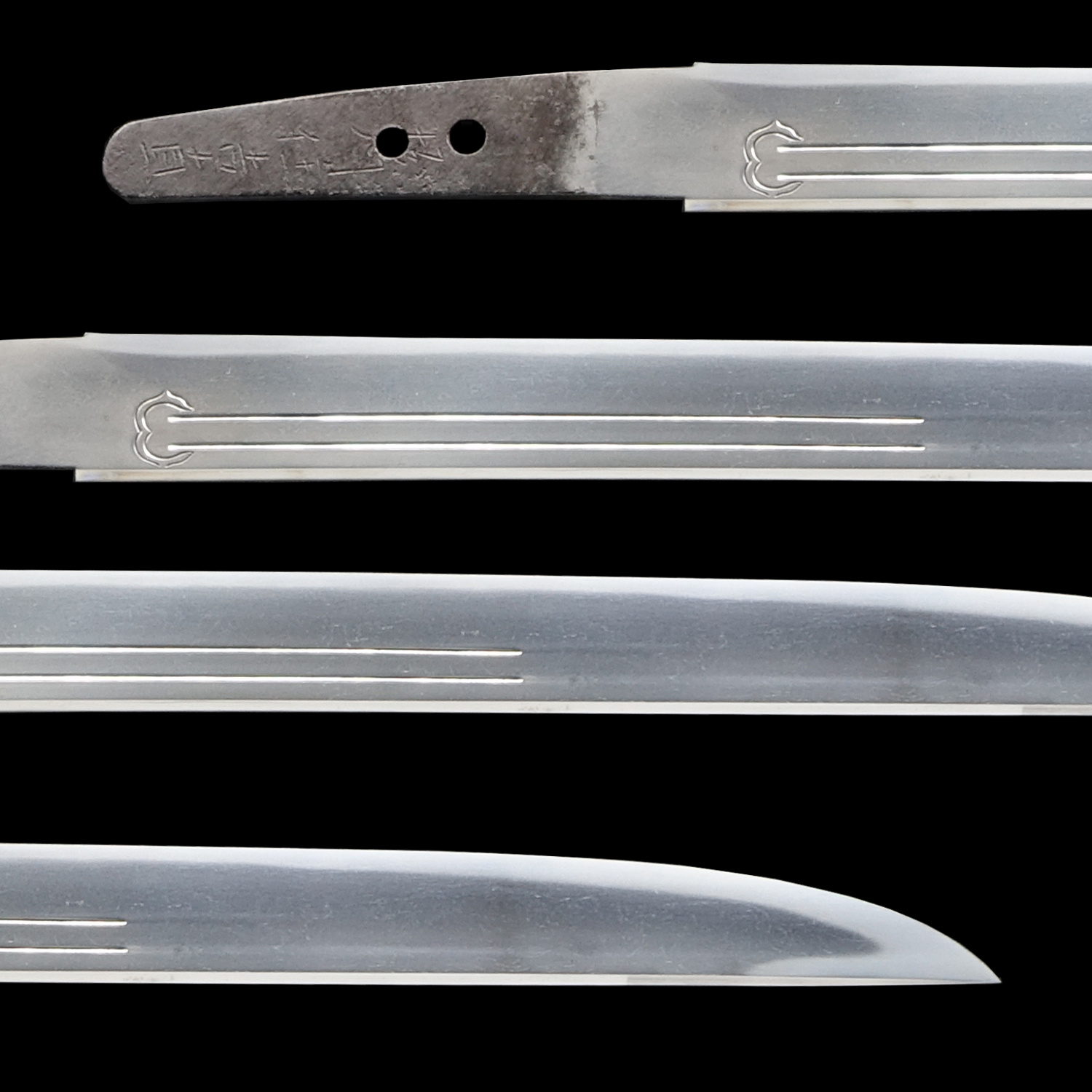 This blade features beautiful engravings on both sides. On one side, you can see a Sankozuka-ken (三鈷柄剣), and on the other, a Suken (素剣).