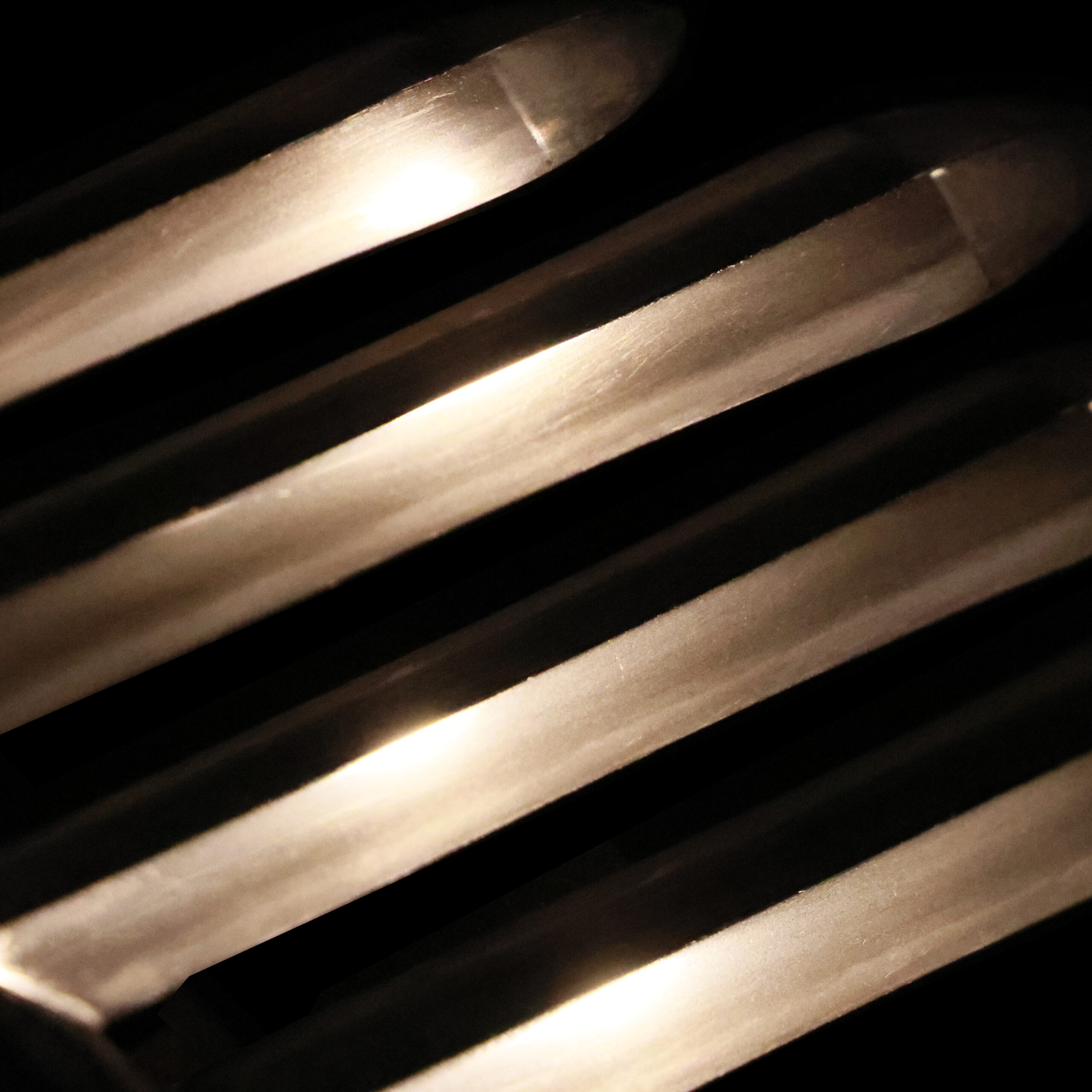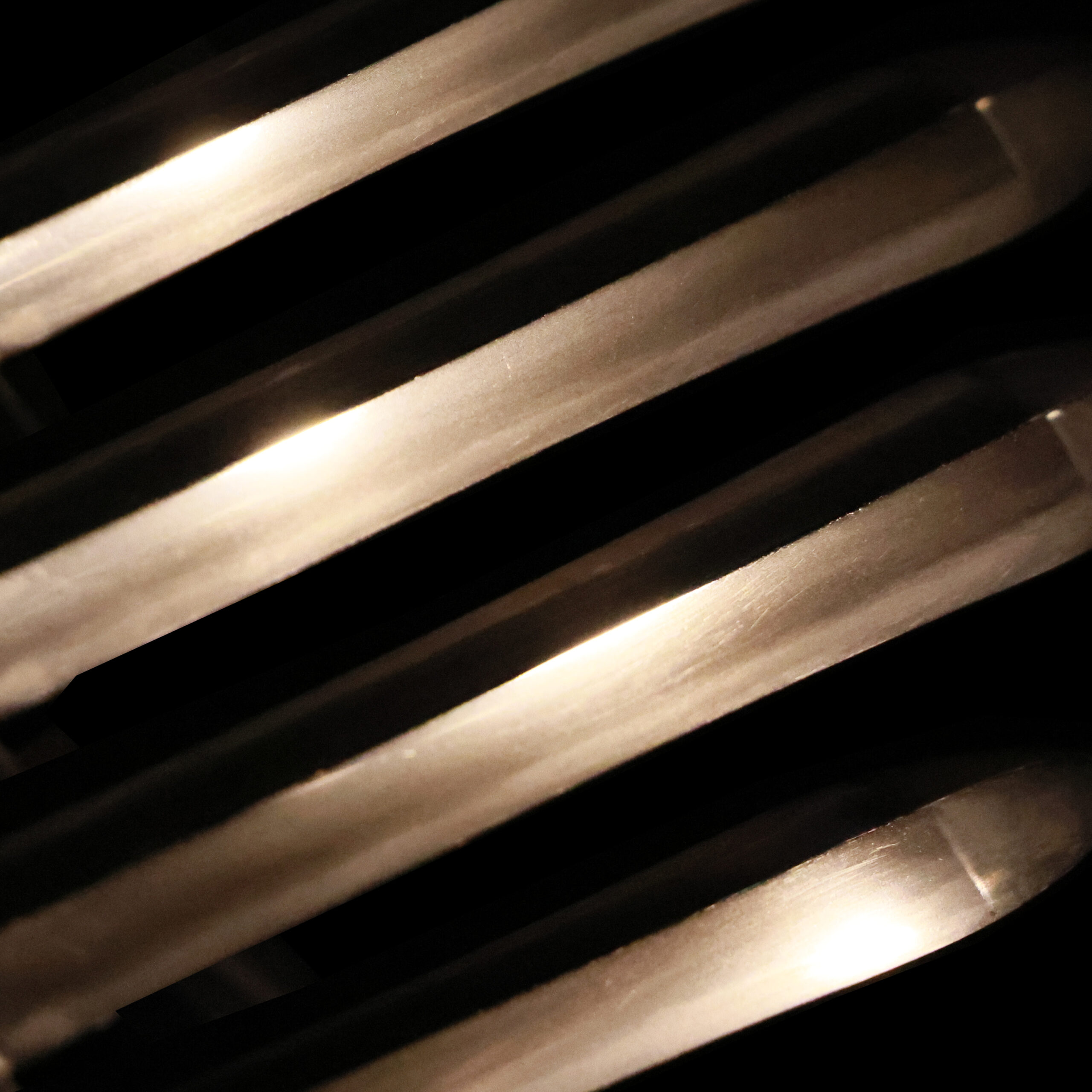 visible steel surface pattern created by folding and hammering during forging process