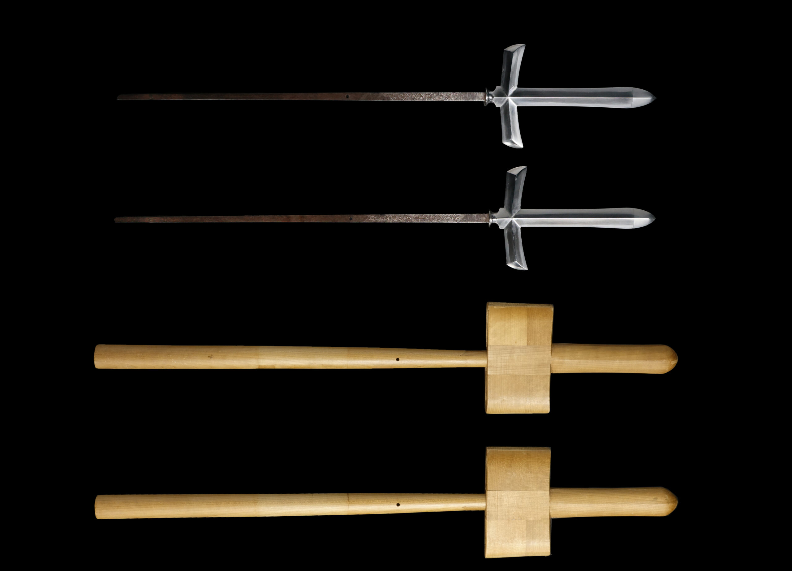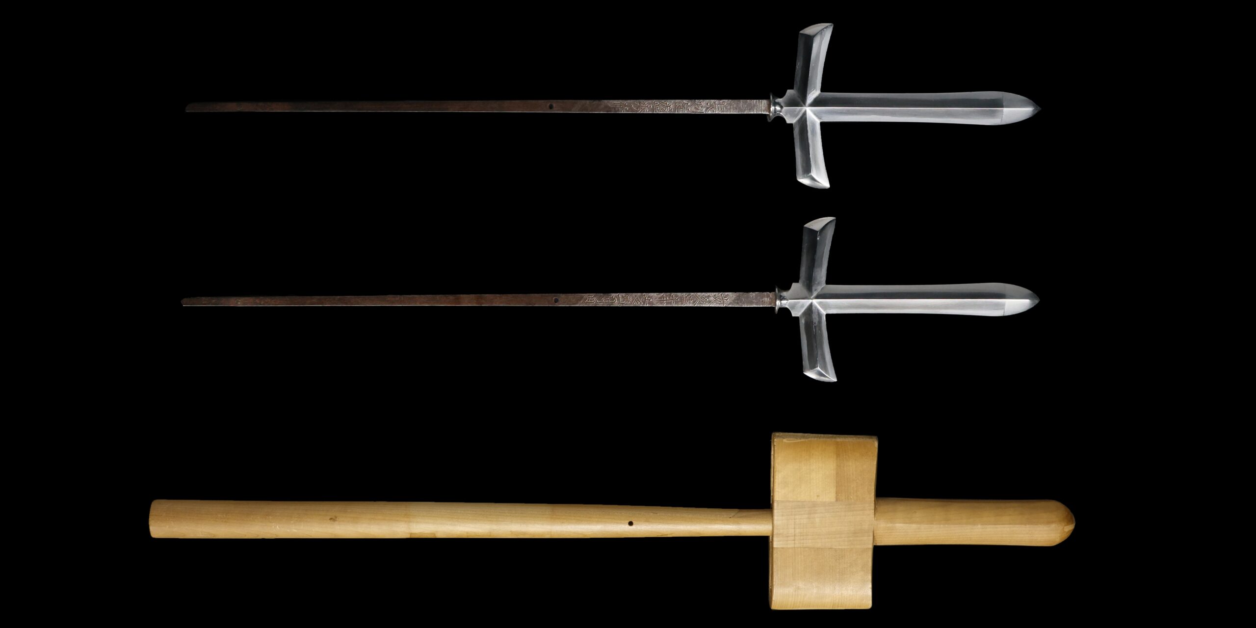 Unlike a standard spear, which typically features a single straight blade, a jumonji yari has two additional side blades extending outward from the base of the central point, forming a shape similar to a cross. This unique structure gave the weapon both symbolic presence and practical versatility.