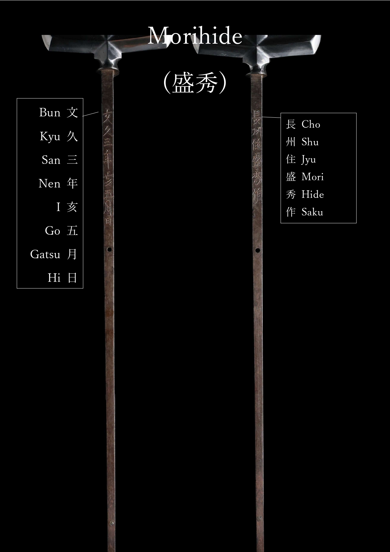 This blade was forged by Choshu Jyu Morihide (長州住盛秀) in May, the third year of the Bunkyu era (1863). Morihide was one of the most renowned swordsmiths of the Chōshū domain (Today’s Yamaguchi Prefecture) during the Tenpō to Keiō eras (1831–1868).