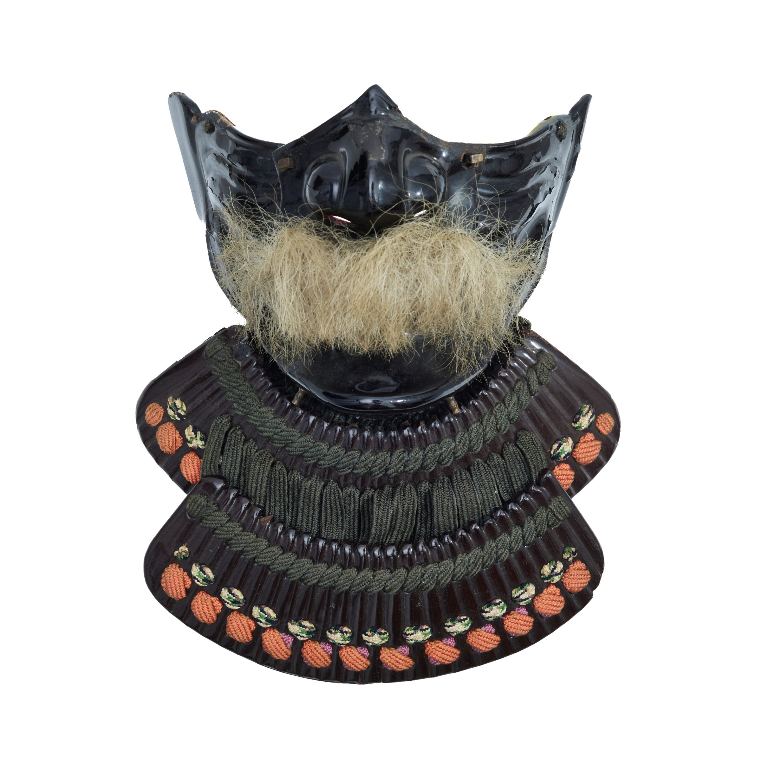 Samurai often preferred Menpo with mustaches, as the facial hair was thought to increase masculine appearance and strength. It was said that a mustache could make even a young warrior look like a seasoned veteran from a distance. This Menpo also bears a mustache, emphasizing that effect.