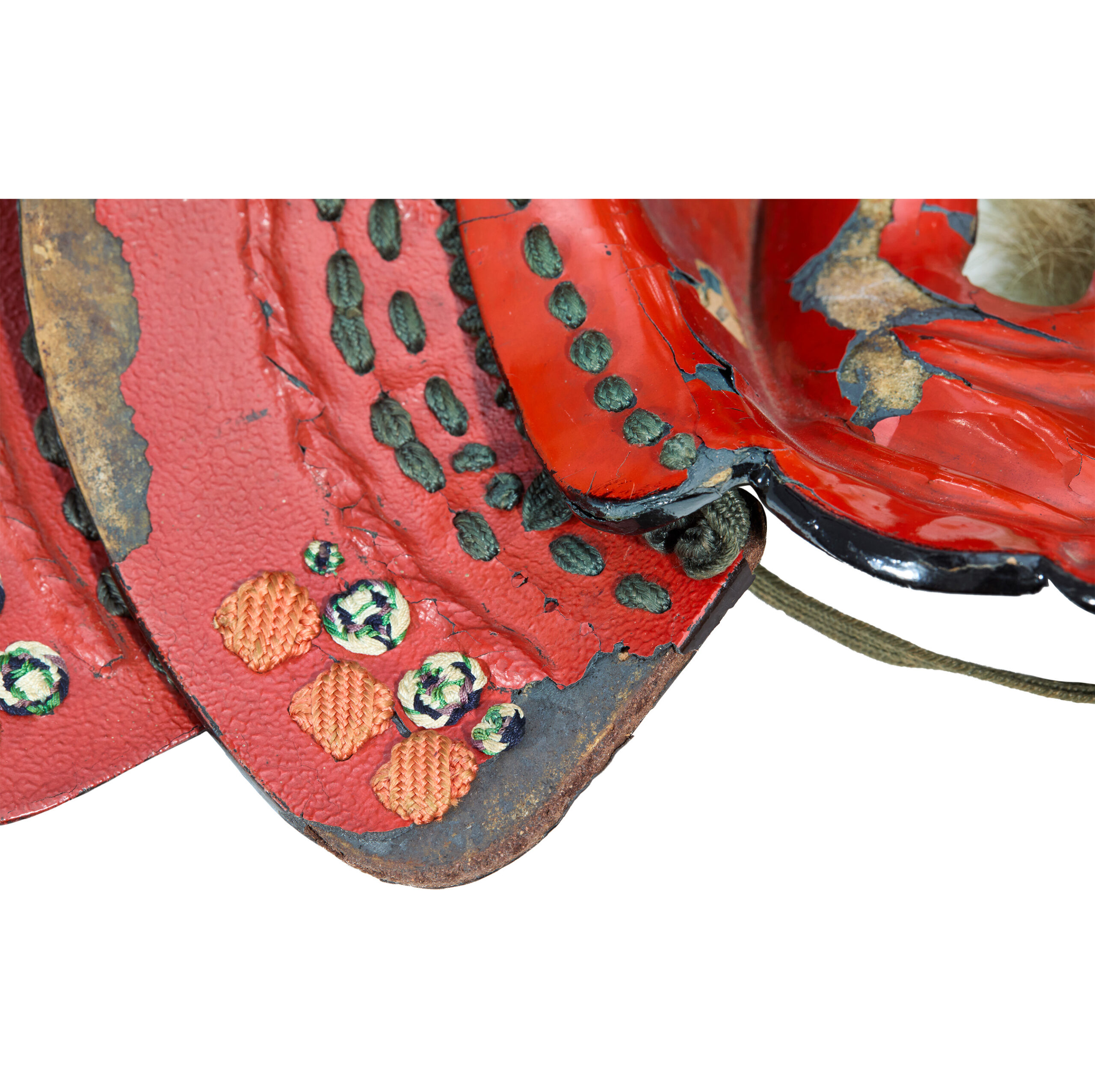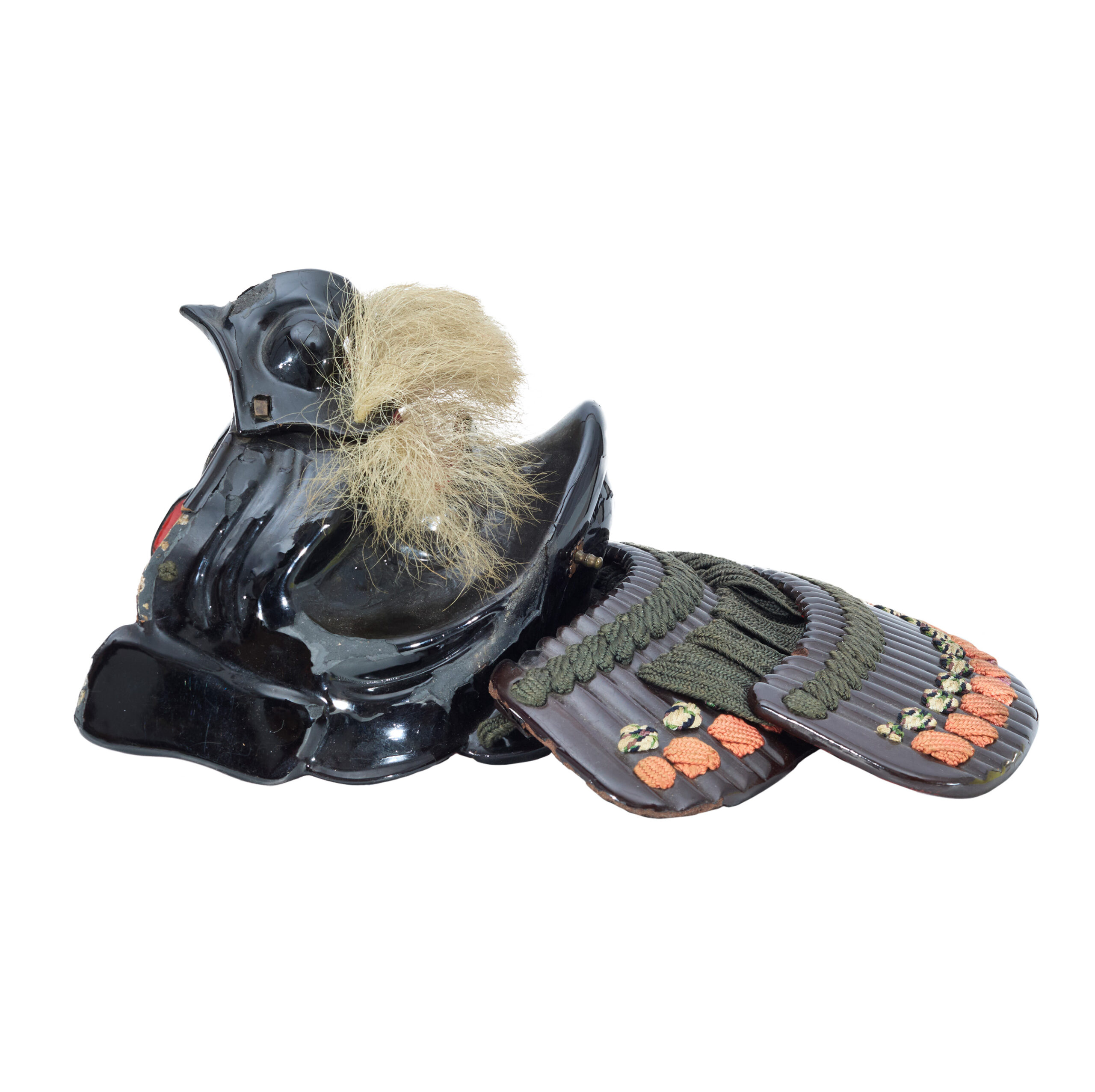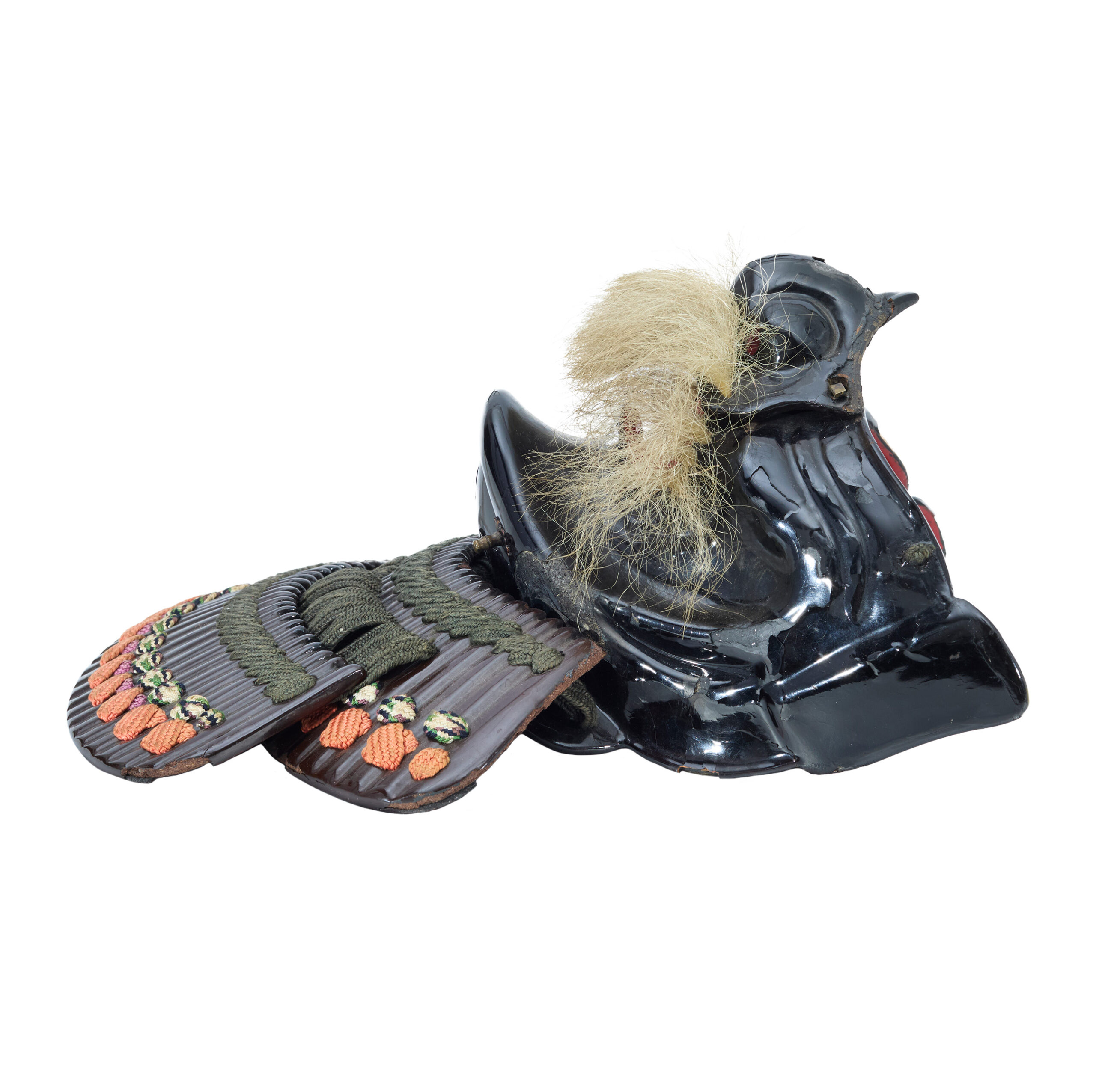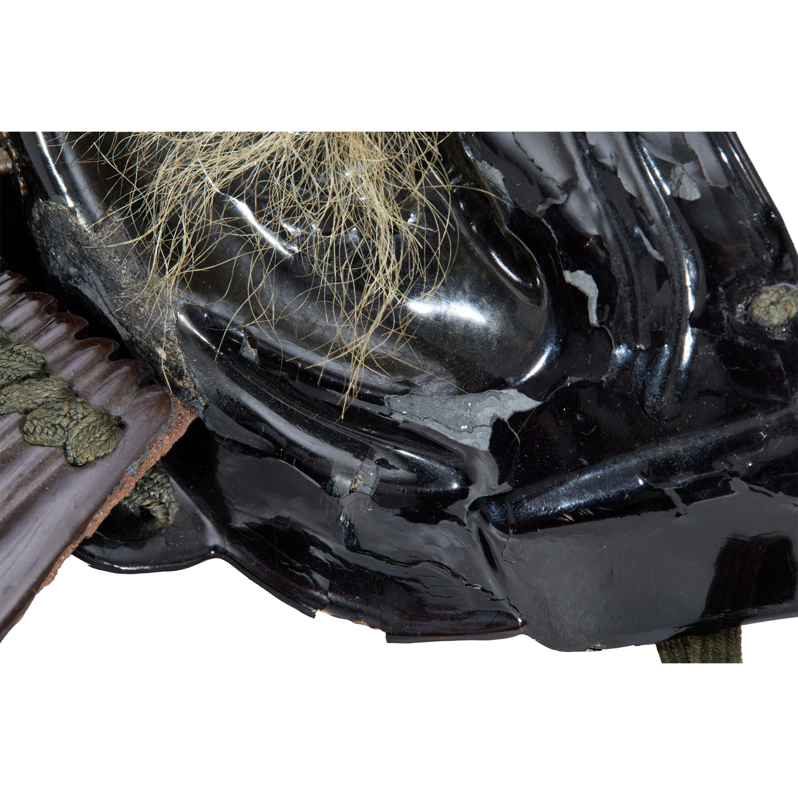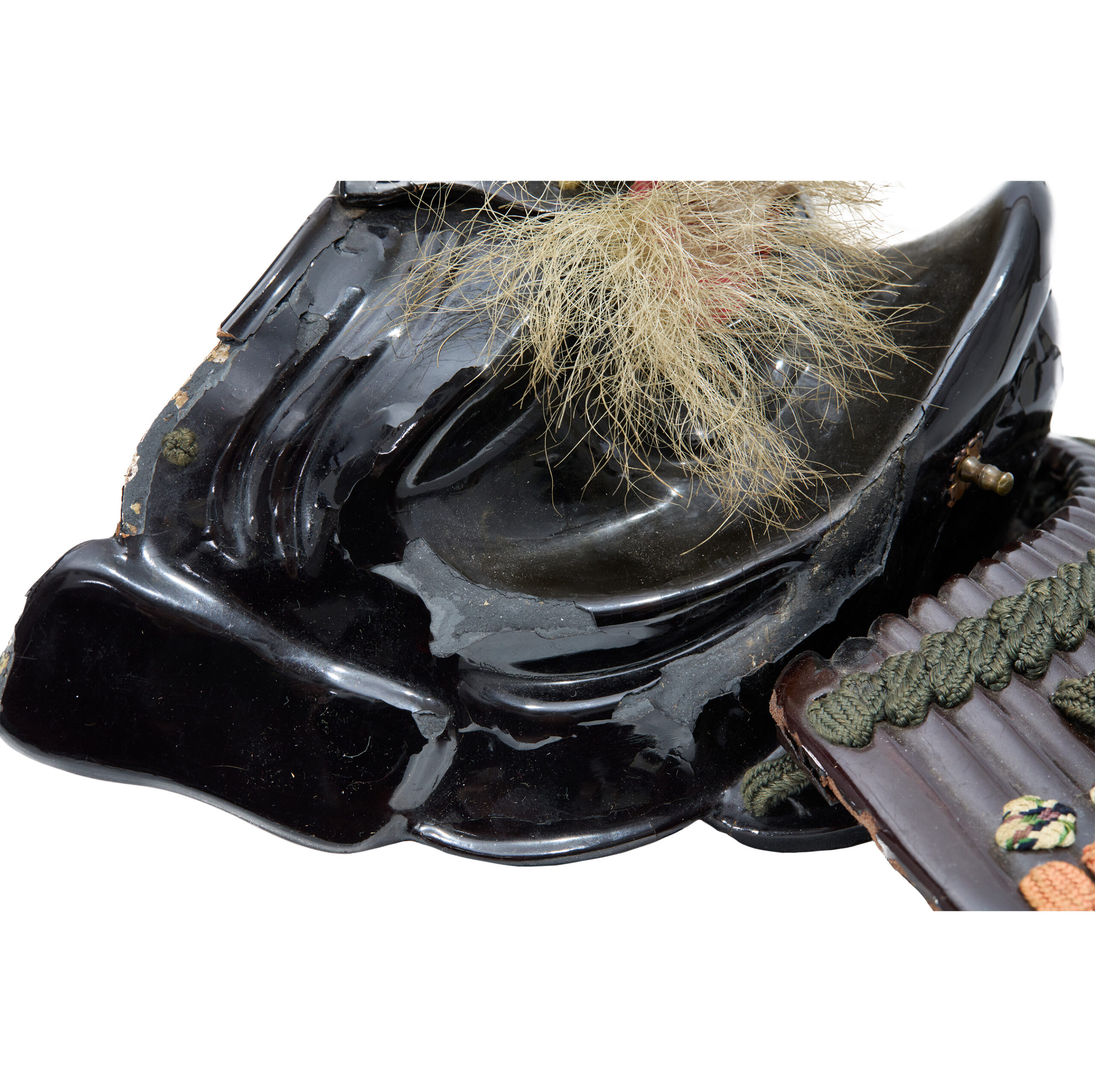 Based on its style and condition, this Menpo was most likely made in the late Edo period (early 17th–late 19th century). Compared with earlier times, the Edo period was relatively peaceful. During this era, possessing a magnificent set of armor became an important status symbol that reflected dignity and social standing. As a result, Samurai armor was increasingly treated as luxurious artwork. Armor makers refined their craftsmanship, adopting the latest techniques of the time to enhance not only the protective function but also the aesthetic beauty of their creations. This trend naturally extended to the crafting of Menpo as well.