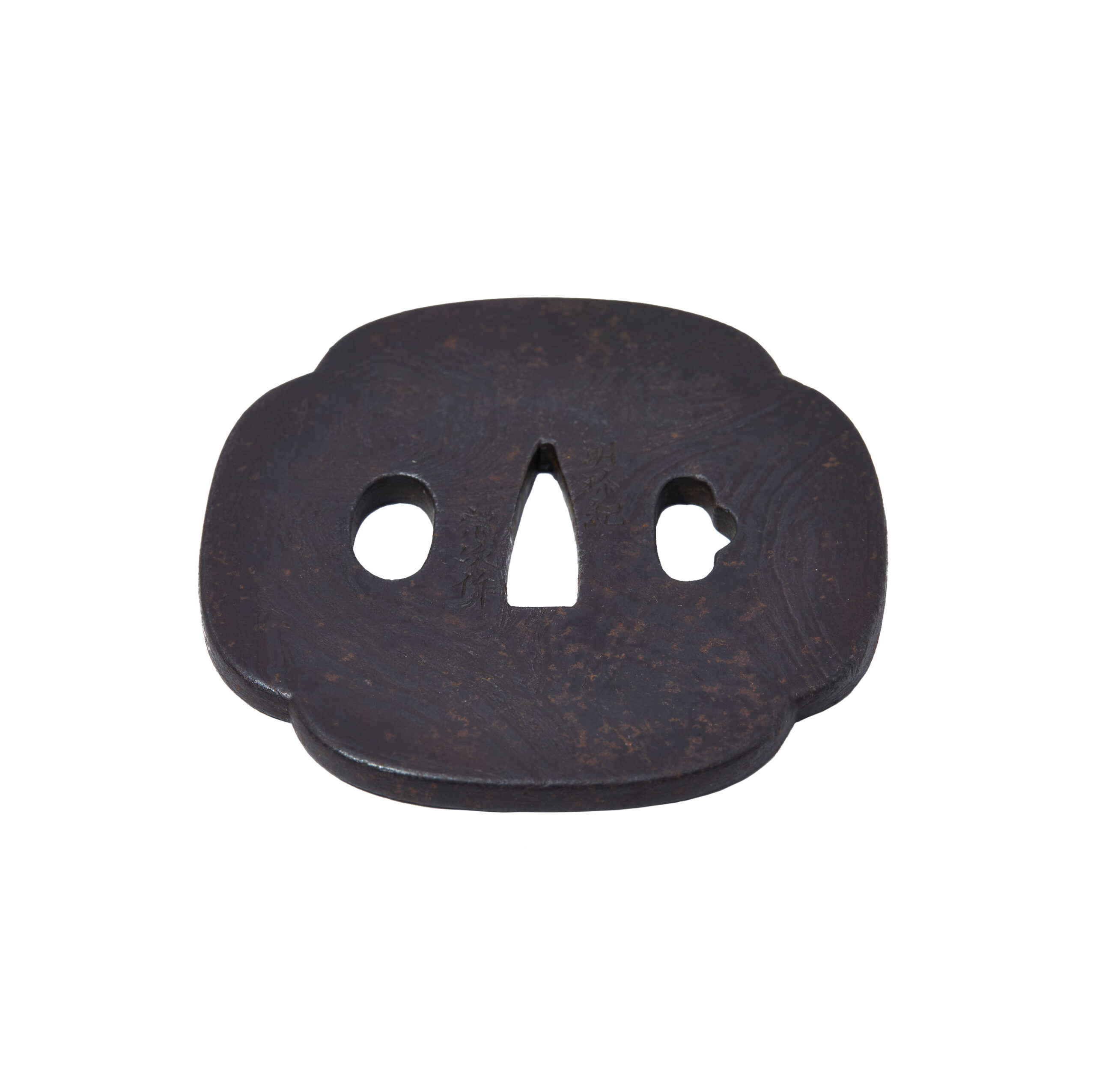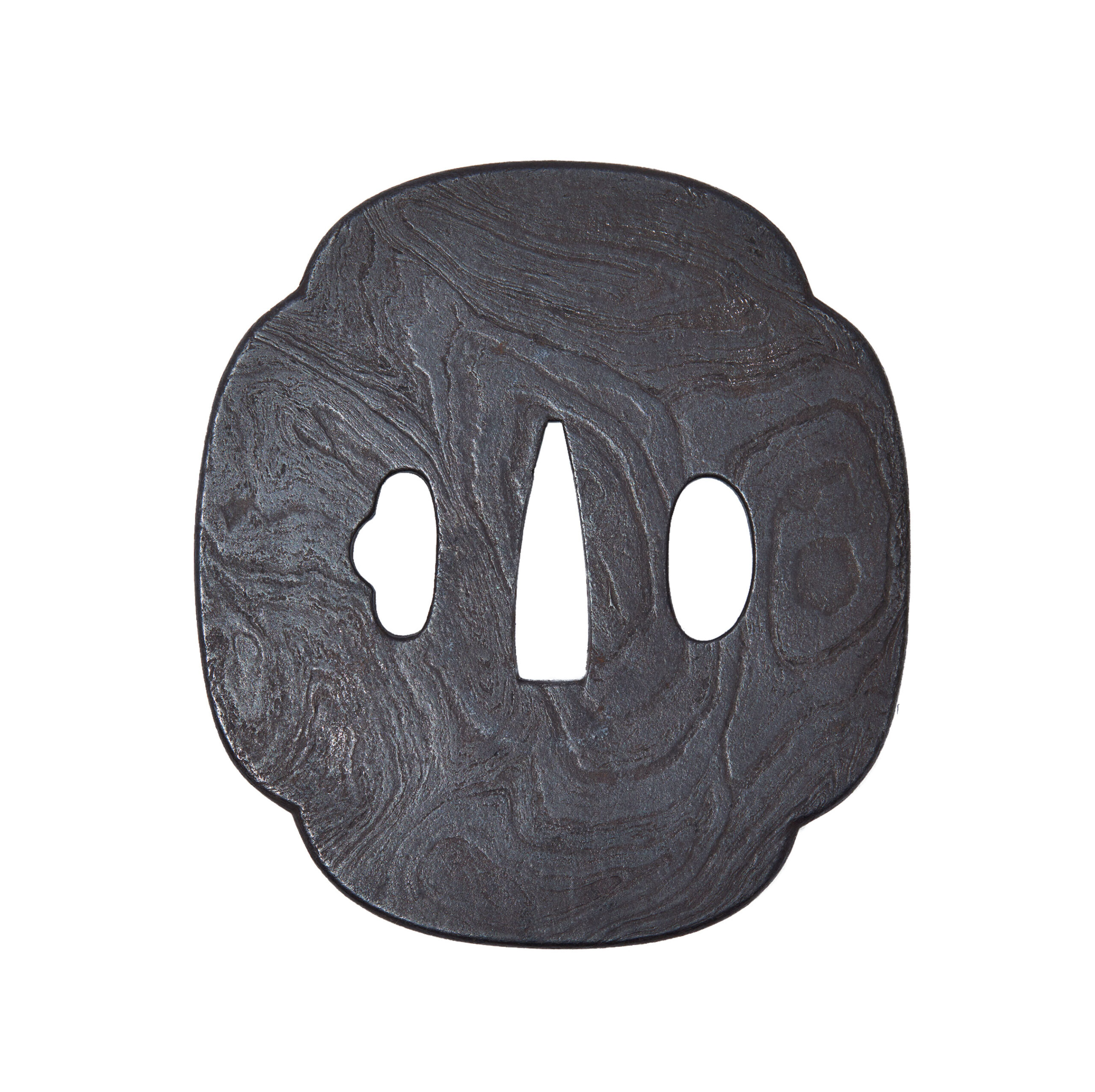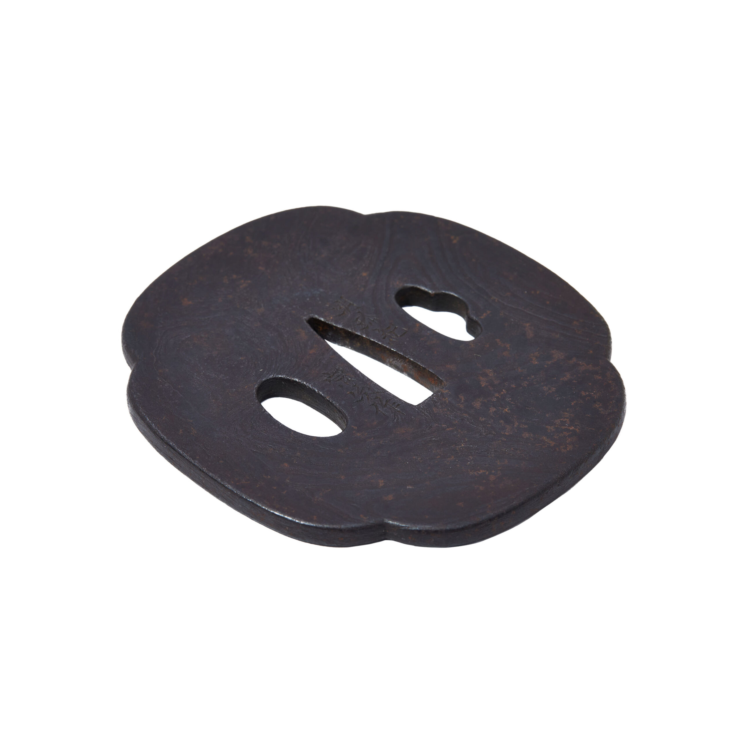 As mentioned above, this Tsuba is mokko-shaped, and the origin of this form is explained in two ways. One is that it resembles the shape of eggs in a nest. The other, as suggested by the characters used to write the name, is that it derives from the cross-section of a quince (Mokko) when cut into slices. This form was also widely used in the family crests of many samurai and was regarded as an auspicious design. In addition, the surface is decorated with beautiful linear patterns that can be interpreted as growth rings of a tree, which is another highlight of this piece.