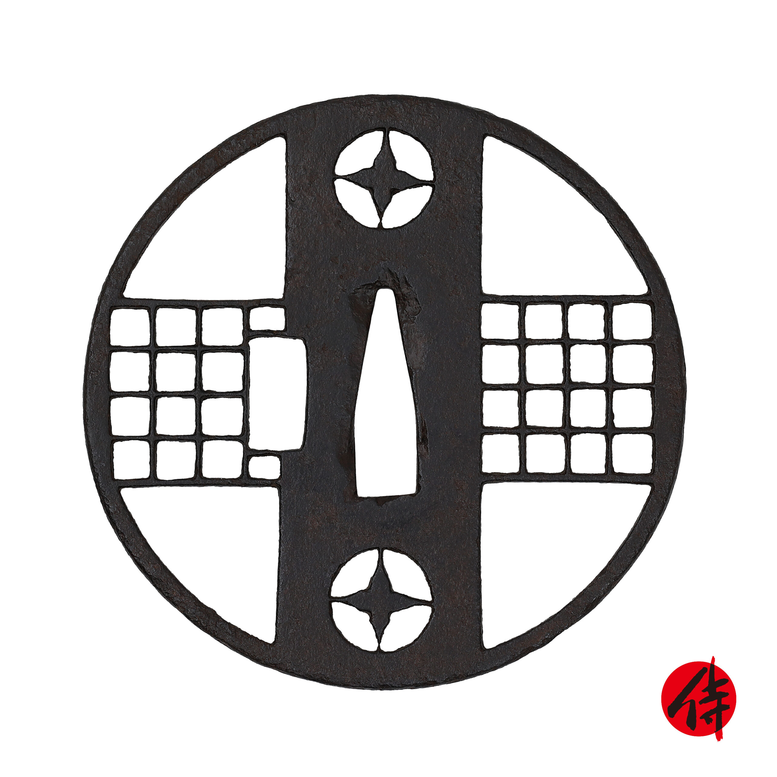 About the design of this Tsuba, the family crest called the Shippou (七宝, which literally means seven treasures) is used. The Shippou pattern came from the Wachigai Mon (輪違い文). Since a ring spreads in all four directions, the name changed to the Shihou (四方, four directions) and switched to the Shippou. In Buddhism, the seven jewels that adorn the pagoda refers to the blessings of the gods and Buddha. Therefore, the Shippou pattern has been regarded as an auspicious design, the same as the Hanabishi design.
