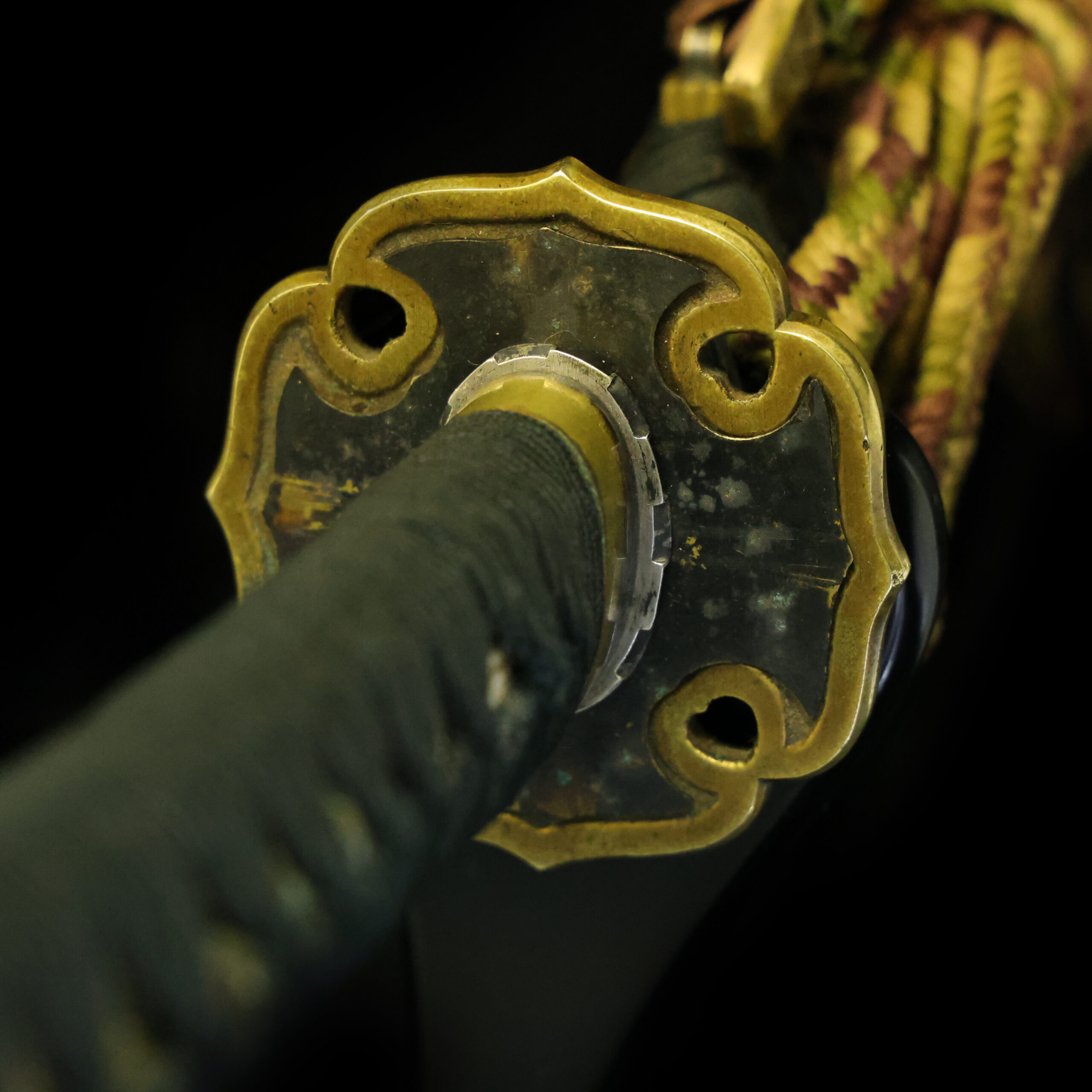 This blade is stored in Tachi(太刀) Koshirae. Tachi was mainly used by an armored Samurai with one hand on horseback from the Heian period (794-1185 A.D.) until the early Muromachi period. TACHI was suspended loosely on the left waist with its edge facing the ground so that you could draw it faster to cut down soldiers on the ground. Because of its gorgeous looking, having a Tachi-style sword mounting became a social status among Samurai.